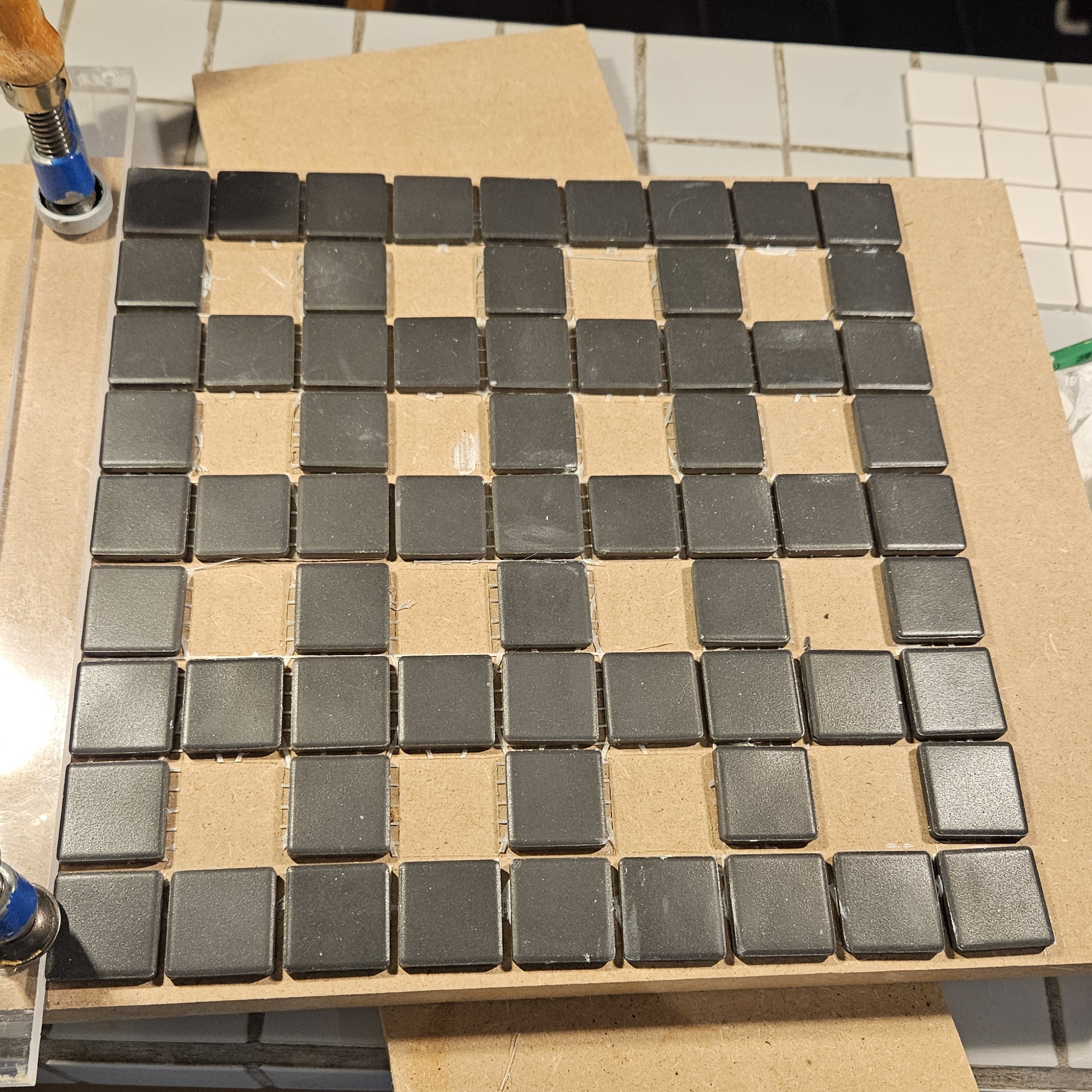 Après pas mal d’hésitations, j’utilise des panneaux de medium que Laurence n’avait pas utilisé plus quelques chutes diverses, le tout simplement collé.