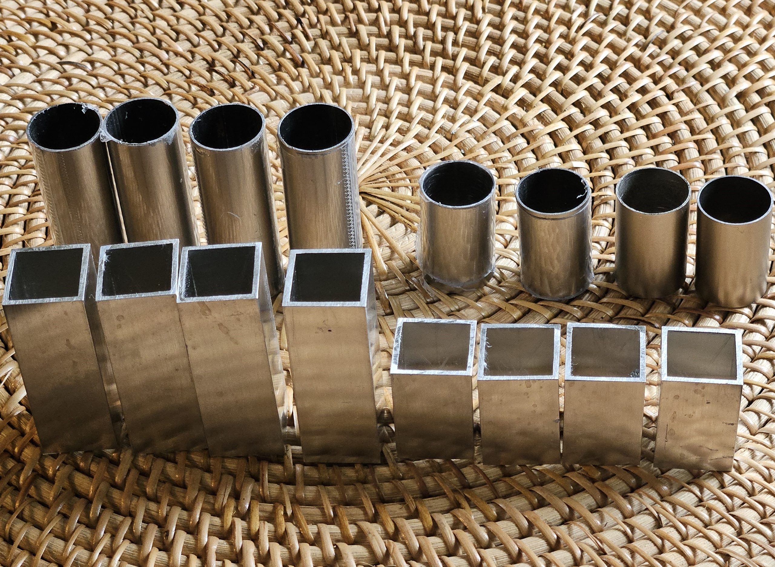 Il faut du carré et du rond, heureusement il y a des tubes carrés en aluminium, restes d’une installation tellement ancienne que j’ai oublié laquelle, et des chutes de tringle à rideau de la nouvelle douche.