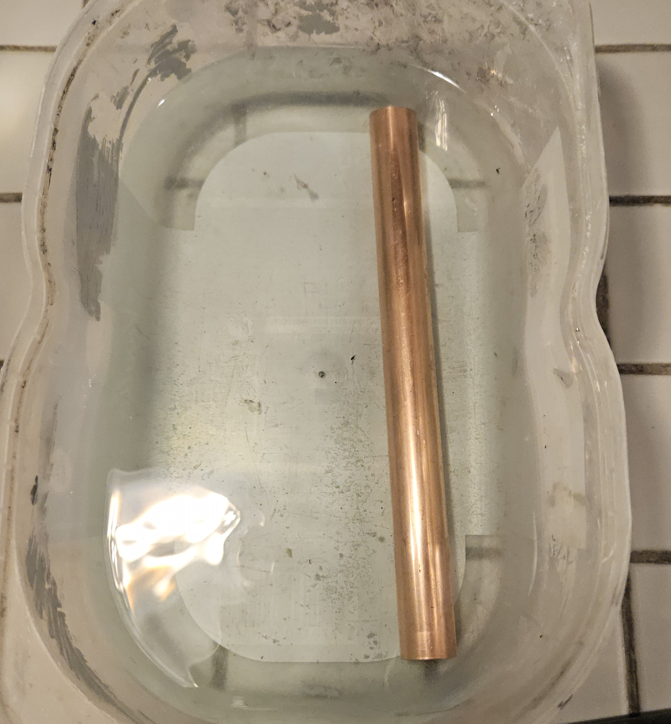 C’est parti pour la confection, on découpe des tubes de longueurs inégales, passage dans du détartrant pour machine à café et ensuite un bon polissage au bistro cuivre et les voilà brillants de tous leurs feux.